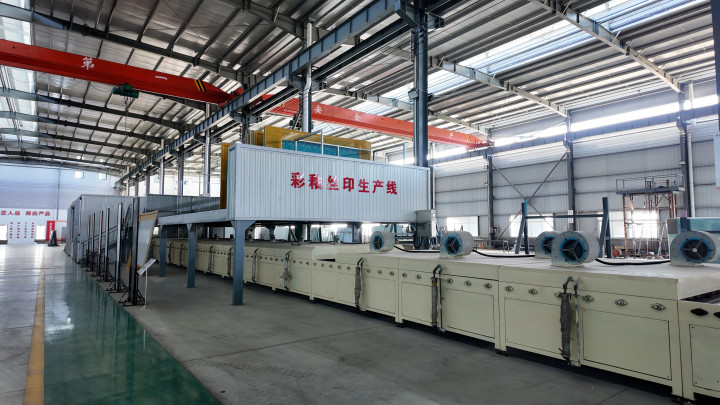 玻璃工厂内的彩釉丝印生产线图由受访者提供